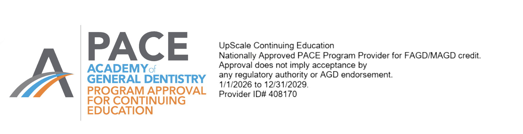 This activity has been planned and implemented in accordance with the standards of the Academy of General Dentistry Program Approval for Continuing Education (PACE) through the joint program provider approval of UpScale Education, LLC and National Network of Healthcare Hygienists.